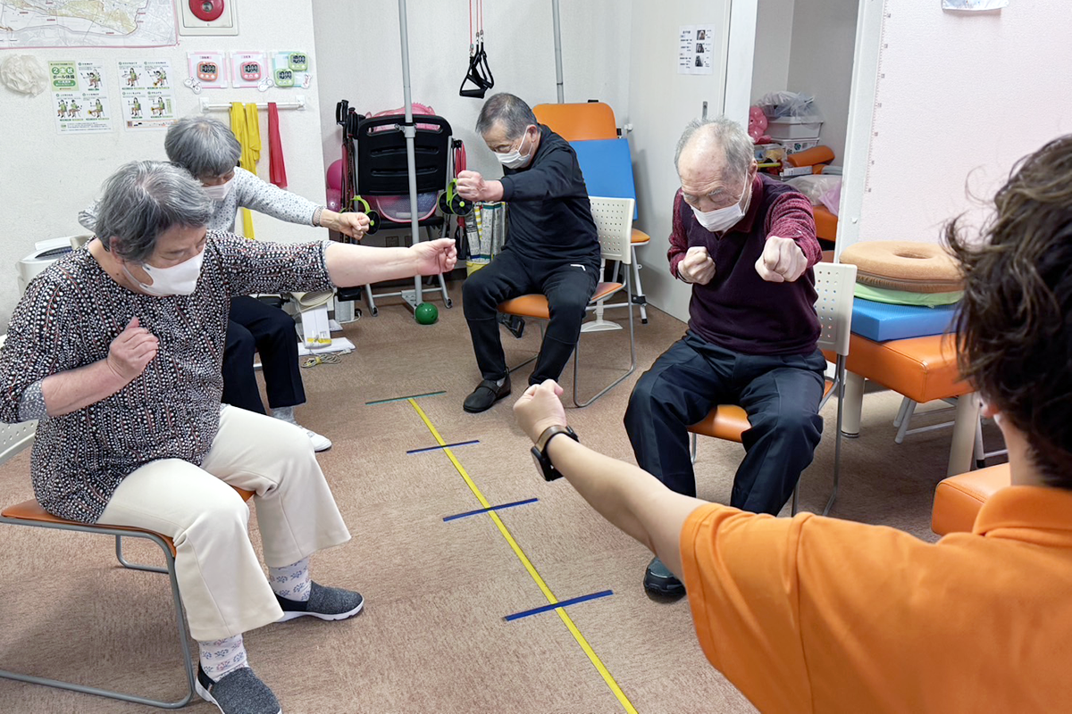 晴れのちFINEでは、利用者様の残存機能を維持することを第一に考え、下肢を中心としたマシントレーニングや機能訓練士による施術を含めたリハビリ指導を行っています。